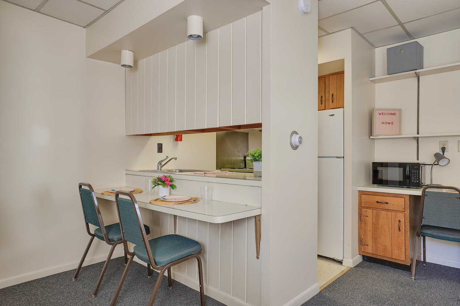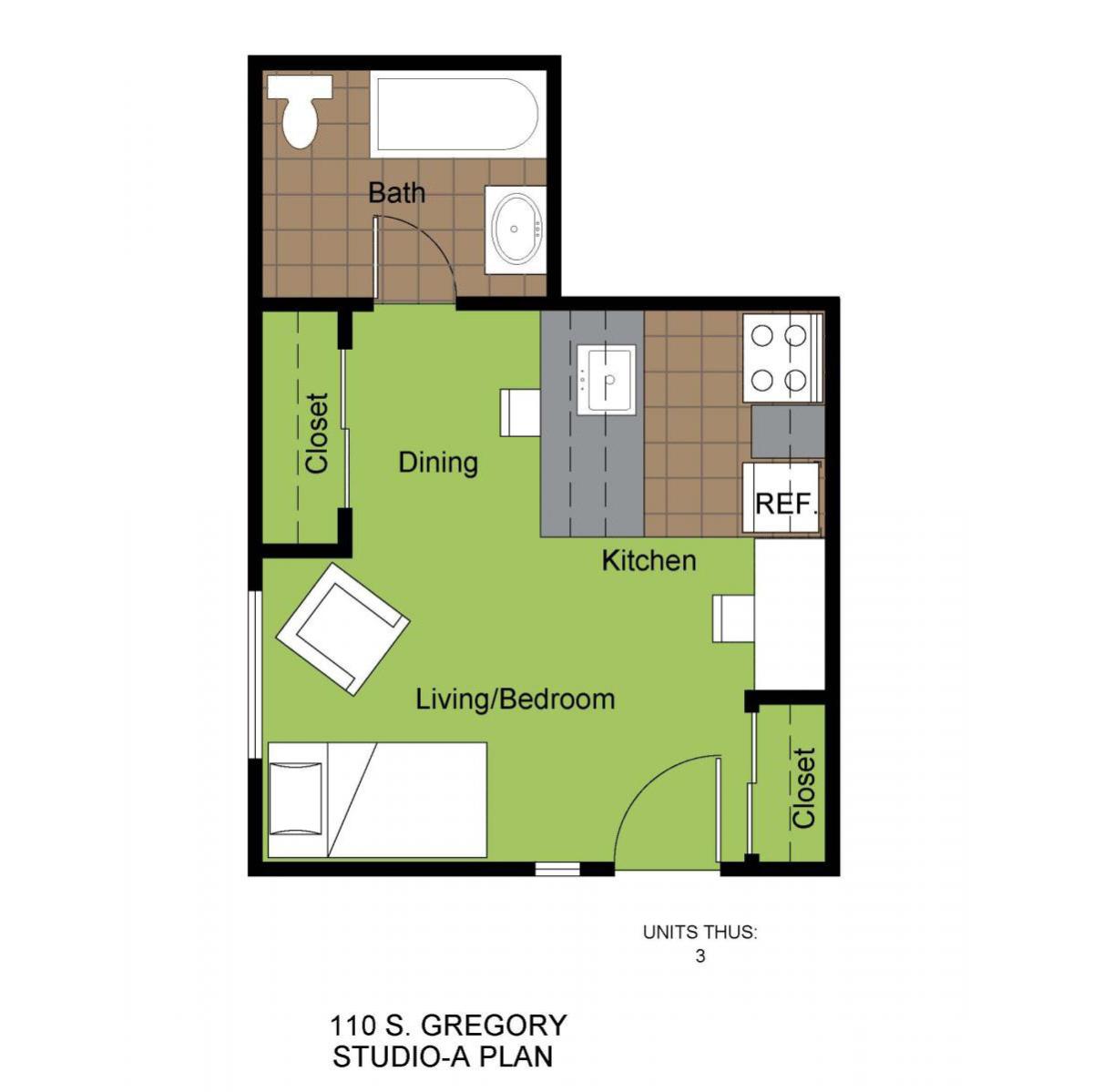 Resting in a quiet Urbana neighborhood, this apartment is the perfect location for students with classes on the North or Main Quad. Units come fully furnished with ample living space, a dining bar, and built-in shelving.