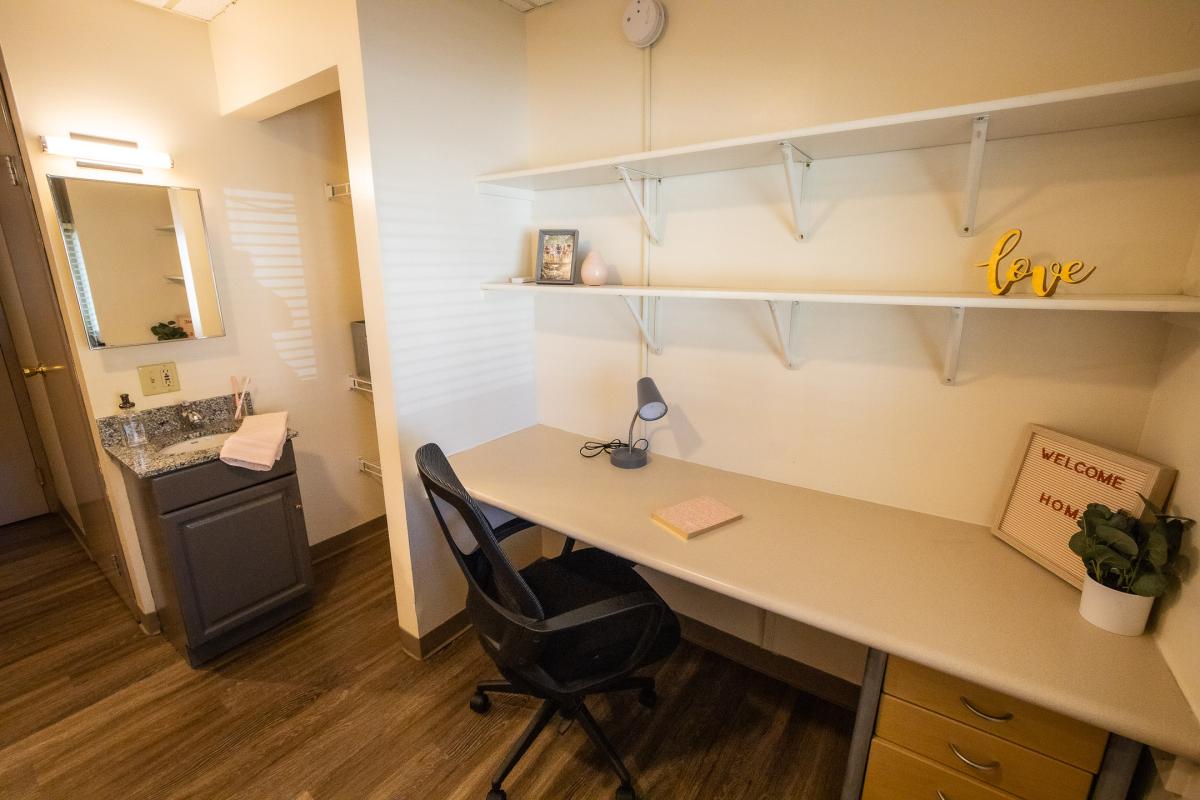 Located on the corner of Armory and Euclid Street, these quiet studio apartments are just steps from the UI Ice Arena and four short blocks from the University of Illinois practice fields and Main Quad. Units at this location have large built-in desks with shelving above, large windows that let in substantial natural light, and on-site laundry.